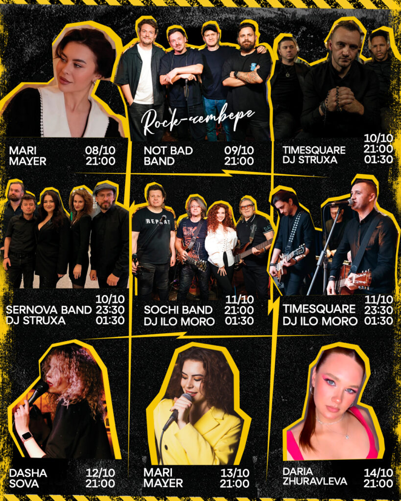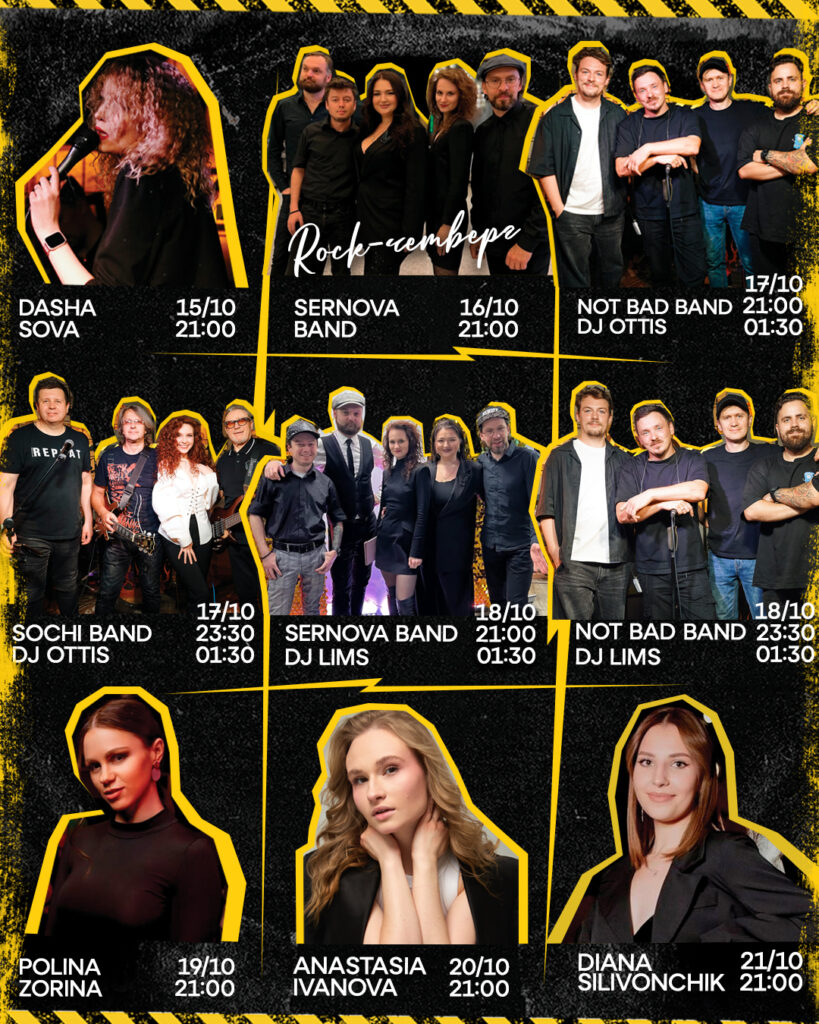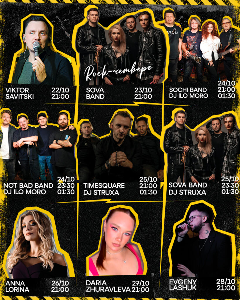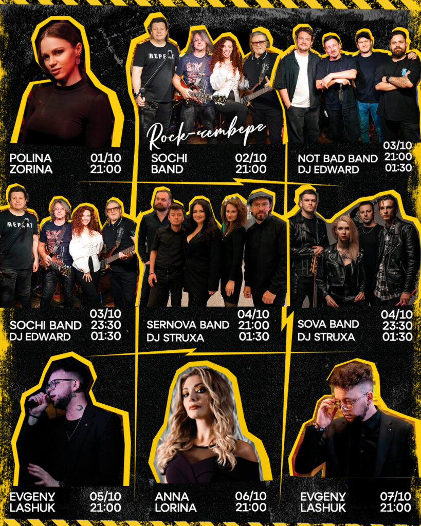 КАЖДЫЙ МЕСЯЦ 21:00 / РОКОВЫЕ ЧЕТВЕРГИ Вы сможете насладиться живой музыкой в исполнении зажигательных кавер-бэндов каждый четверг!