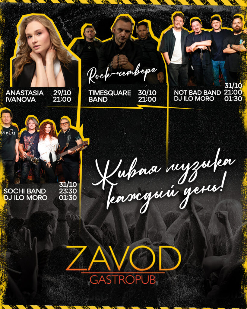 Приглашаем зарядиться драйвовой музыкой и насладиться прекрасной атмосферой роковых четвергов, ведь вас ждут самые популярные и любимые рок-хиты всех времен вместе с гастропабом-караоке «ZAVOD»!
